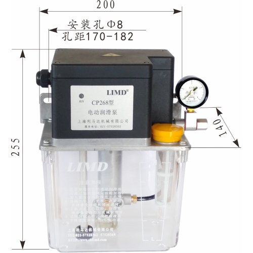 一、概述 “CP268”電動(dòng)潤(rùn)滑泵,內(nèi)含自動(dòng)卸荷閥、自動(dòng)排氣內(nèi)閥、溢流閥、低油位報(bào)警、壓力開(kāi)關(guān)等,其中壓力開(kāi)關(guān)使用壽命高達(dá)100萬(wàn)次,屬間歇工作泵。用于需周期工作的容積式定量集中潤(rùn)滑系統(tǒng)。電動(dòng)泵的工況受外來(lái)指令控制,得電即泵油失電為停泵且處于自動(dòng)卸壓狀態(tài)。 工作電源:AC220v,50/60(Hz); 功率:60(w);額定壓力:2.5(MPa);額定流量:160(ml/mim); 油箱容量:2升;適用介質(zhì):N32#~N320#潤(rùn)滑油。