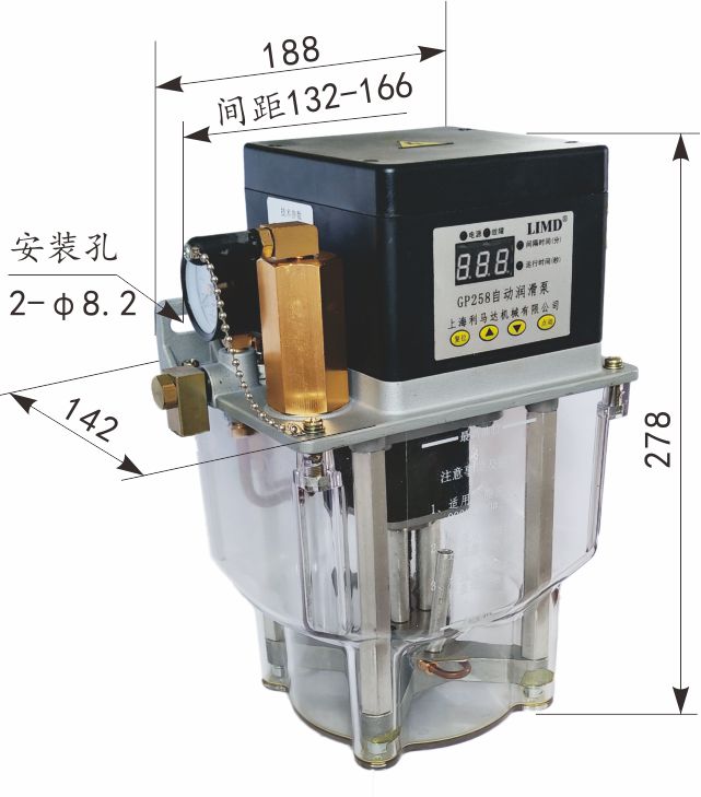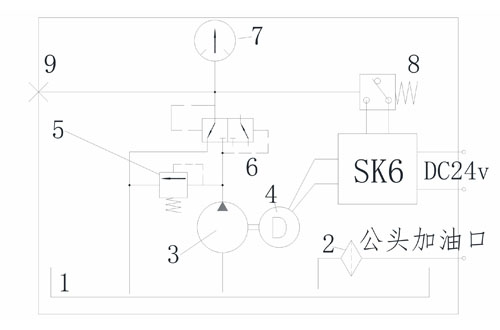 一、概述 "GP258"電動(dòng)油脂泵,內(nèi)含"SK6"型控制器、自動(dòng)卸荷閥、自動(dòng)排氣內(nèi)閥、溢流閥、油脂過(guò)濾器、攪拌及壓送油脂的螺旋槳等,屬間歇工作泵。用于需周期工作的容積式定量集中潤(rùn)滑系統(tǒng)。泵油間歇時(shí)間設(shè)置范圍:1~999分鐘(倒計(jì)時(shí)),具有斷電記憶功能;每次泵油時(shí)間長(zhǎng)短根據(jù)環(huán)境溫度變化、負(fù)載多少自動(dòng)調(diào)整;油泵的運(yùn)行時(shí)間和間歇時(shí)間均采用數(shù)碼管顯示。 工作電源:DC24v; 功率:120(w);額定壓力:5.0(MPa);額定流量:120(ml/mim); 油箱容量:2升;適用介質(zhì):000#、00#、0#油脂。 二、工作原理 “GP258”電動(dòng)油脂泵工作原理:將間歇時(shí)間設(shè)定后,即進(jìn)入間歇倒計(jì)時(shí)狀態(tài),中途斷電再次通電后繼續(xù)遞減計(jì)時(shí),累計(jì)計(jì)滿預(yù)設(shè)的間歇時(shí)間。"SK6"型控制器確認(rèn)常開(kāi)型壓力開(kāi)關(guān)8復(fù)位的前提下(斷態(tài)信號(hào),通態(tài)報(bào)警),控制電機(jī)4運(yùn)轉(zhuǎn)驅(qū)動(dòng)齒輪泵3泵油,經(jīng)自動(dòng)換向閥6壓送至輸出口9輸往潤(rùn)滑系統(tǒng)。當(dāng)系統(tǒng)分油結(jié)束,壓力上升到壓力開(kāi)關(guān)動(dòng)作壓力時(shí),“SK6”型控制器指令油泵電機(jī)繼續(xù)運(yùn)轉(zhuǎn)10秒鐘(這是保壓時(shí)間,可調(diào))。期間系統(tǒng)壓力穩(wěn)定到溢流閥5的調(diào)定壓力(保壓)。停泵時(shí),換向閥6在差壓信號(hào)的作用下恢復(fù)至左位機(jī)能,溝通主管路卸荷通道,系統(tǒng)壓力卸壓。額定壓力由調(diào)壓閥5控制,壓力表7顯示。 三、電氣接線說(shuō)明 1、電源引線端接到DC24V電源,必須長(zhǎng)供電,否則功能休止; 2、聯(lián)控輸出(常開(kāi)常閉可選擇)接到主機(jī)控制端。不需要聯(lián)控主機(jī)工況的可讓其懸空。 四、使用與調(diào)整 1.參考“電氣接線說(shuō)明”連接。只要接通電源,綠色“電源燈”常亮;當(dāng)油泵電機(jī)處于運(yùn)轉(zhuǎn)狀態(tài),綠色“運(yùn)行燈”閃爍;當(dāng)油泵電機(jī)處于停止?fàn)顟B(tài),黃色“間歇燈”閃爍;當(dāng)紅色“故障燈”閃爍且數(shù)碼管顯示 :“-E2”時(shí)表示卸壓故障(壓力開(kāi)關(guān)沒(méi)有復(fù)位,處于通態(tài)信號(hào)),“-E3”時(shí)表示上次泵油時(shí)欠壓故障(低壓力報(bào)警,壓力開(kāi)關(guān)沒(méi)有發(fā)出通態(tài)信號(hào))。 2.油泵按鍵說(shuō)明 2.1復(fù)位鍵,按此鍵完成一次完整的工作循環(huán)。完整的工作循環(huán)是:①檢測(cè)壓力開(kāi)關(guān)是否復(fù)位,沒(méi)復(fù)位則報(bào)警顯示“-E2”,復(fù)位則進(jìn)入第二階段;②啟動(dòng)油泵泵油,從設(shè)定的最長(zhǎng)泵油時(shí)間開(kāi)始倒計(jì)時(shí),期間如果一直沒(méi)有壓力開(kāi)關(guān)的通態(tài)信號(hào),則報(bào)警并顯示“-E3”,當(dāng)系統(tǒng)壓力達(dá)到壓力開(kāi)關(guān)動(dòng)作值時(shí),即進(jìn)入第三階段;③保壓階段,保壓時(shí)間倒計(jì)時(shí)歸零,進(jìn)入第四階段;④待機(jī)階段,計(jì)滿間歇時(shí)間開(kāi)始下一循環(huán)。 2.2增加鍵,當(dāng)進(jìn)入相應(yīng)設(shè)置狀態(tài)后,數(shù)碼管閃爍顯示對(duì)應(yīng)的時(shí)間設(shè)定值,按此鍵對(duì)應(yīng)的時(shí)間設(shè)定值將累加1。 2.3減少鍵,當(dāng)進(jìn)入相應(yīng)設(shè)置狀態(tài)后,數(shù)碼管閃爍顯示對(duì)應(yīng)的時(shí)間設(shè)定值,按此鍵對(duì)應(yīng)的時(shí)間設(shè)定值將累減1。 2.4點(diǎn)動(dòng)鍵,在工作狀態(tài)時(shí),點(diǎn)按此鍵結(jié)束當(dāng)前工作;在間隔狀態(tài)時(shí),按此鍵則進(jìn)入點(diǎn)動(dòng)工作狀態(tài),數(shù)碼管累加顯示工作秒數(shù)。 3.工況設(shè)置(各類(lèi)時(shí)間設(shè)置) 3.1 設(shè)置間歇時(shí)間:在間歇狀態(tài)下長(zhǎng)按增加鍵5秒進(jìn)入間隔時(shí)間調(diào)整狀態(tài),松開(kāi)按鍵。再點(diǎn)按增加鍵或減少鍵來(lái)調(diào)整需要的間隔時(shí)間值,當(dāng)目標(biāo)值出現(xiàn)即松開(kāi)按鍵,10秒后生效,可調(diào)整范圍為1-999分鐘。 3.2 設(shè)置最長(zhǎng)泵油時(shí)間:在間隔狀態(tài)下同時(shí)按住增加鍵和減少鍵5秒,進(jìn)入最長(zhǎng)時(shí)間調(diào)整狀態(tài)界面,松開(kāi)按鍵。再點(diǎn)按增加鍵或減少鍵來(lái)調(diào)整需要的最長(zhǎng)泵油時(shí)間值,當(dāng)目標(biāo)值出現(xiàn)即松開(kāi)按鍵,10秒后生效。 3.3 設(shè)置保壓時(shí)間:在間隔狀態(tài)下,先按住減少鍵不松開(kāi)再同時(shí)按住點(diǎn)動(dòng)鍵5秒,直到數(shù)碼管閃爍,松開(kāi)按鍵。再點(diǎn)按增加鍵或減少鍵來(lái)調(diào)整需要的保壓時(shí)間值,當(dāng)目標(biāo)值出現(xiàn)即松開(kāi)按鍵,10秒后生效,可調(diào)整范圍為0-60秒鐘。 4.注意事項(xiàng) 4.1 必須經(jīng)過(guò)加油過(guò)濾器加入規(guī)定牌號(hào)的潤(rùn)滑油,加入量應(yīng)在油標(biāo)規(guī)定的范圍內(nèi)。 4.2 要注意電源線極性,如果正負(fù)極接反了,電源指示燈不亮,螺旋槳和泵芯反轉(zhuǎn)。螺旋槳和泵芯的轉(zhuǎn)向是一樣的,從油泵的上面往下看,順時(shí)針旋轉(zhuǎn)是正確的,逆時(shí)鐘旋轉(zhuǎn)是反轉(zhuǎn)。 4.3 壓力由溢流閥控制。順時(shí)